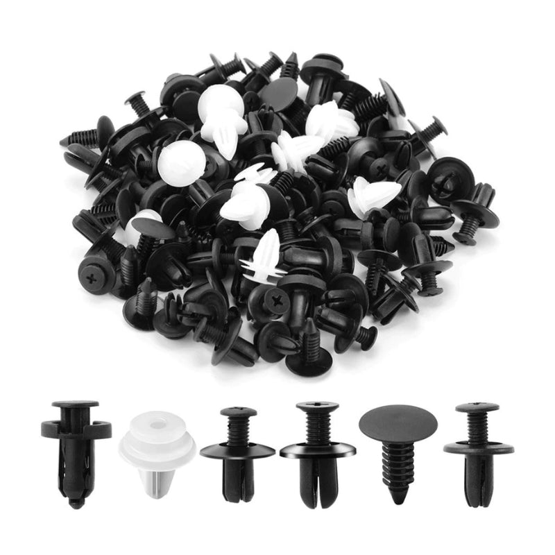 - Kit Versátil com 100 Peças: Contém 6 dos tipos mais comuns de presilhas, compatíveis com a maioria das montadoras para fixação de para-choques, para-lamas, painéis e forros de porta.